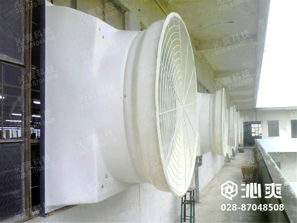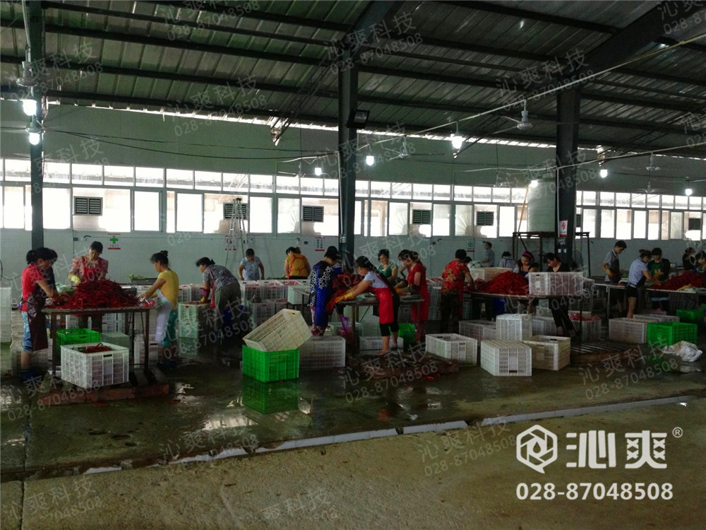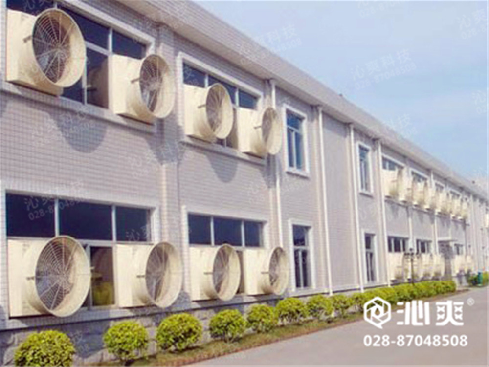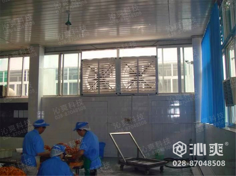绵阳梓椒食品有限公司——高温车间降温换气工程实例,安装沁爽冷风机降温换气机组28台,防腐负压风机强排风机组20台,施工时间:2014年5月至2014年6月