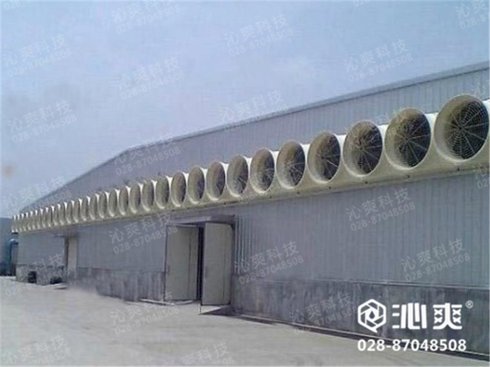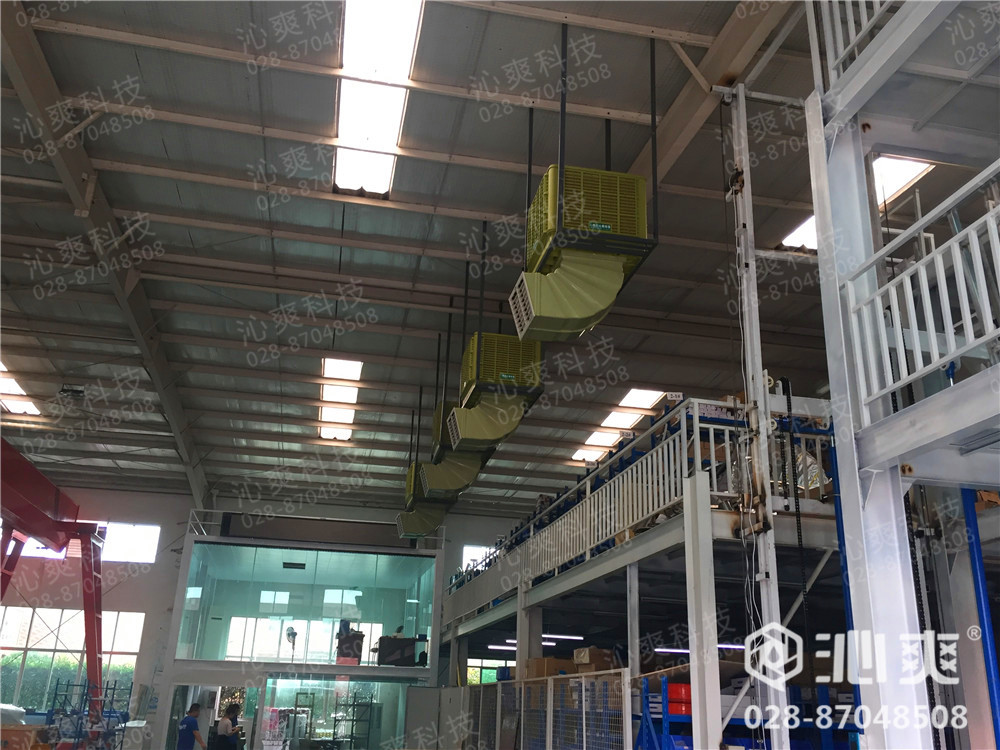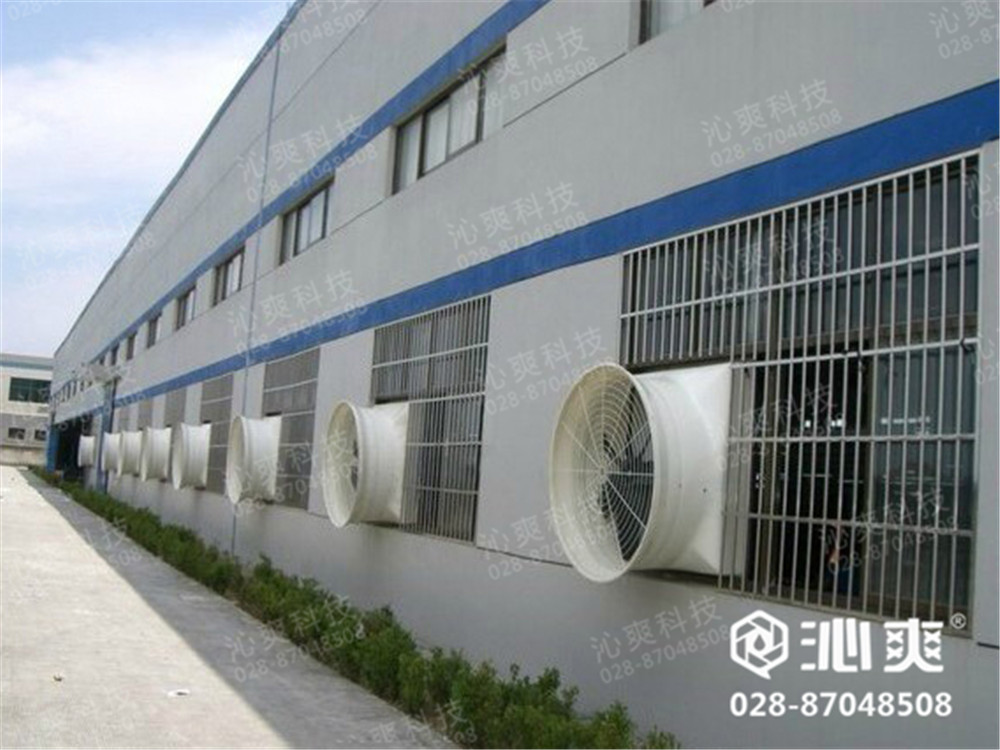 成都国泰真空有限公司——高温车间降温换气工程实例,安装沁爽冷风机降温换气机组28台,防腐负压风机强排风机组18台,施工时间:2018年7月至2018年8月